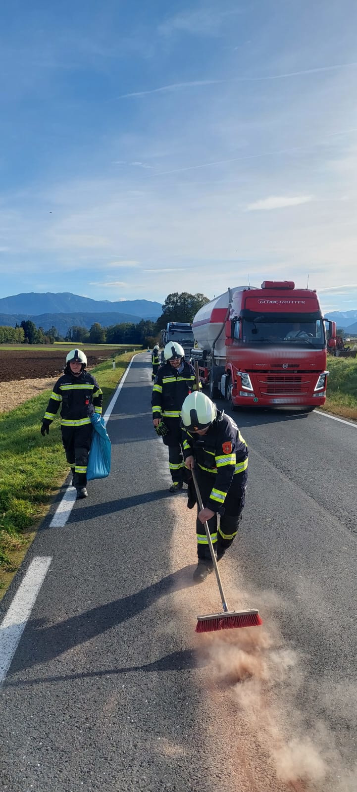 Am 08.10.2025 wurde die FF St.Thomas am Zeiselberg um 15:34 Uhr zu einer längeren Ölspur auf die Görtschitztal Straße (B92) zwischen St.Thomas und Matzendorf alarmiert.