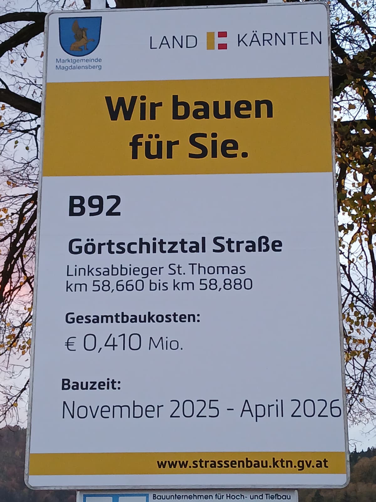 Jahrzehnte lang wurde seitens der Marktgemeinde Magdalensberg verhandelt – jetzt kommt ER, der Linksabbieger auf der Görtschitztal Straße (B92) im Bereich der Abzweigung St.Thomas!
