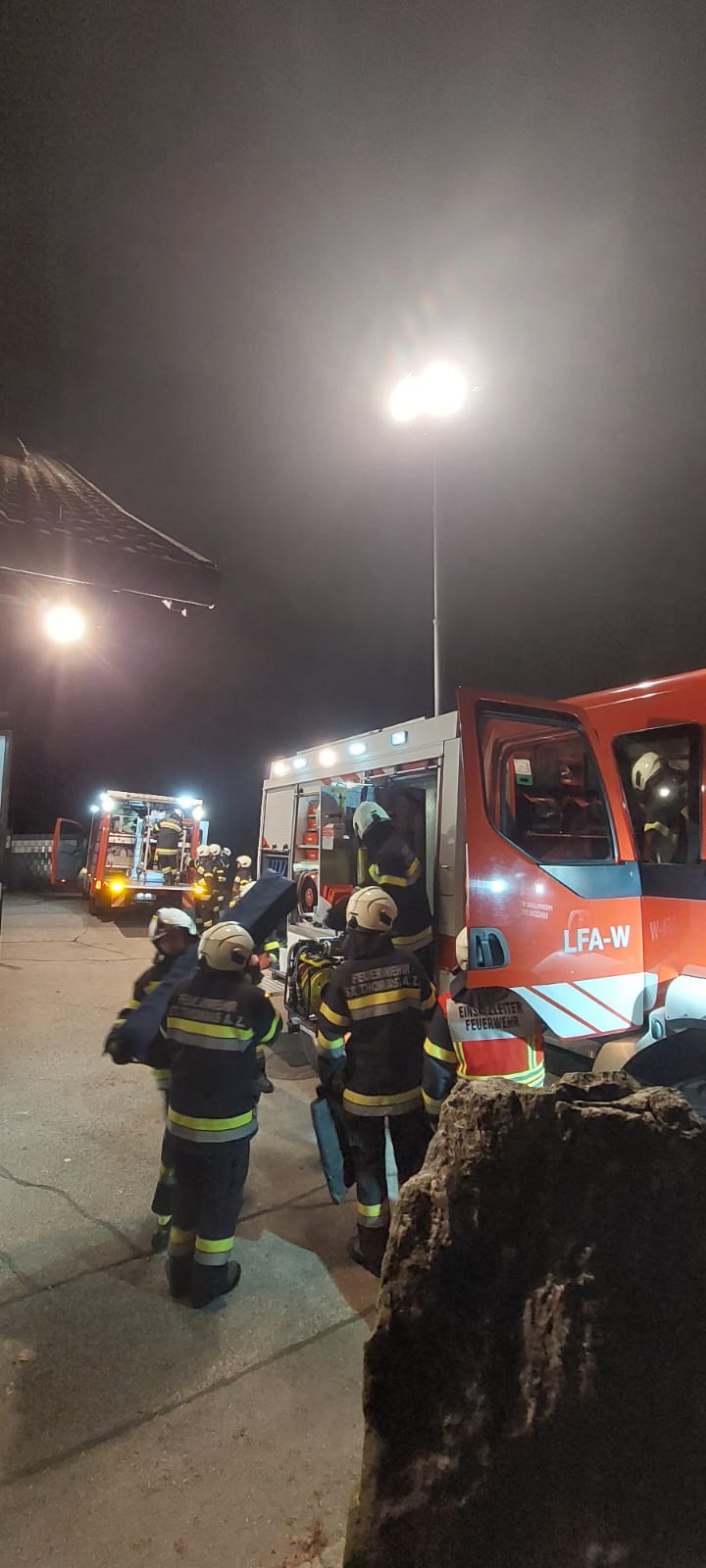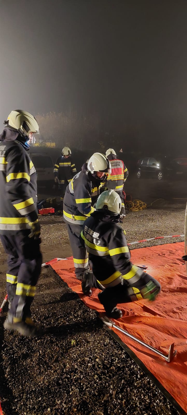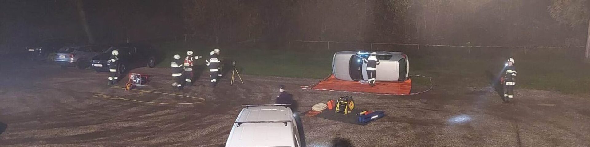 Bei dieser Übung ging es um die Vertiefung der Fertigkeiten mit dem Hydraulischen Rettungsgerät, die Ausleuchtung und Absicherung der Einsatzstelle und der Aufbau eines Geräteablageplatzes. Die Übung wurde so aufgebaut, dass der Betrieb der einzelnen Geräte nicht von den Einsatzfahrzeugen erfolgen konnte und die Gerätschaften ins „Gelände“ getragen werden mussten.