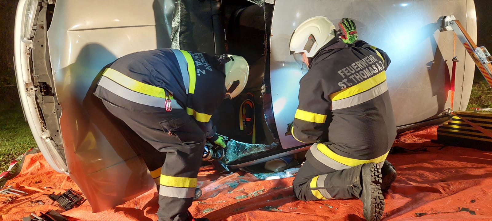 Am 06. November 2025 wurde am Parkplatz der FF St.Thomas eine Gesamtübung zum Thema Verkehrsunfall durchgeführt.