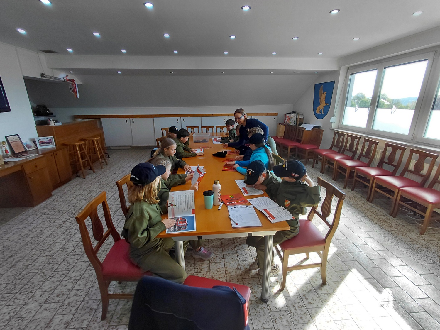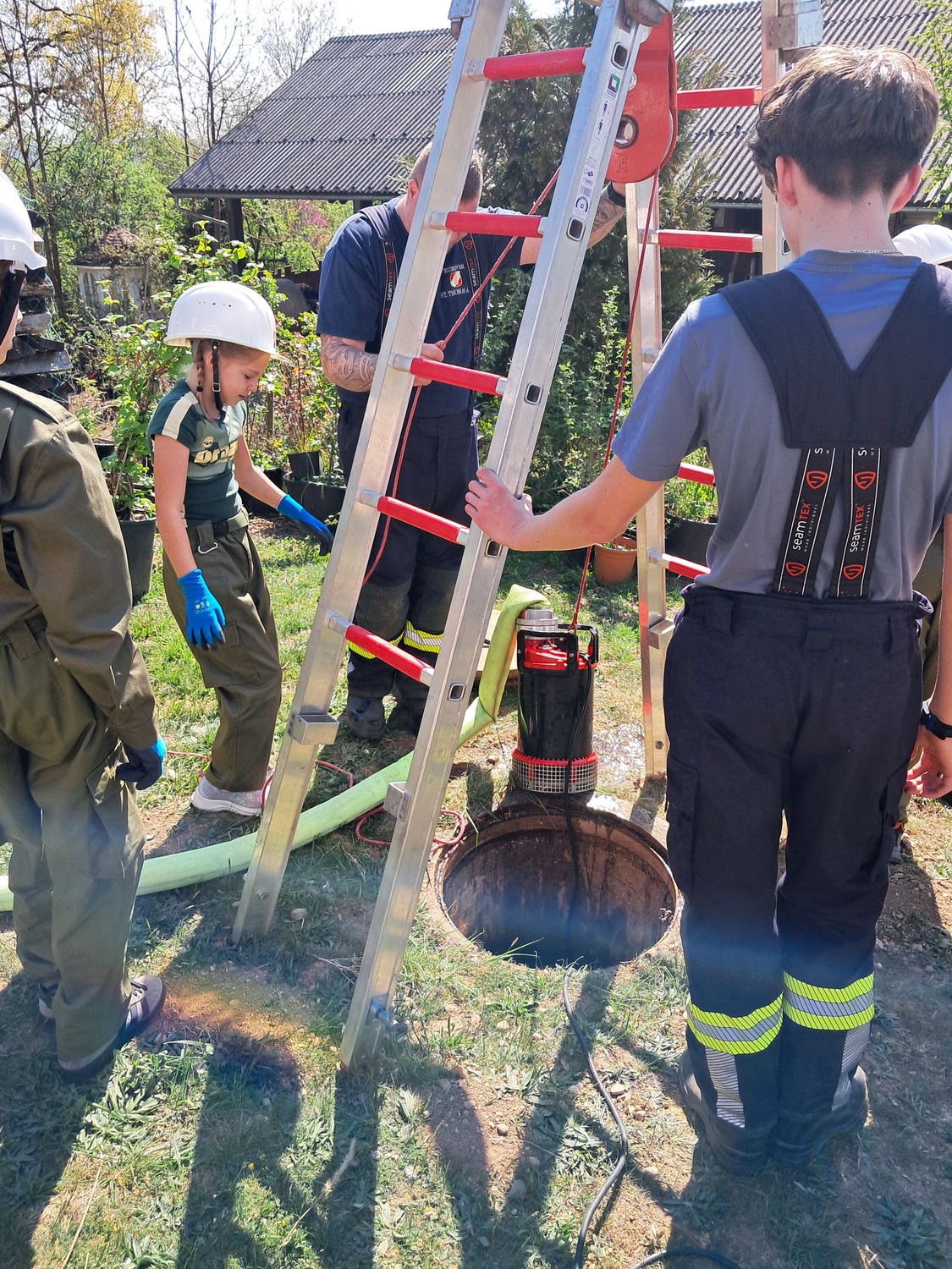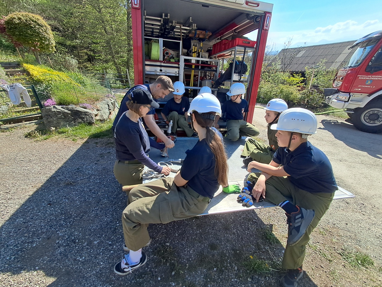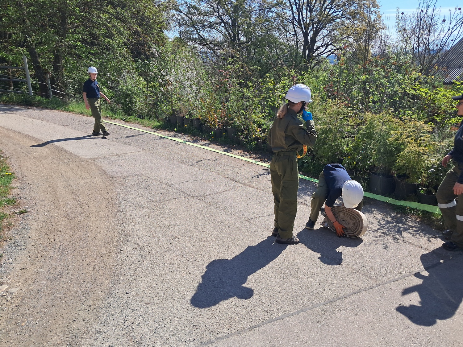 Im Anschluss an diese Besprechung wurde ein Teil der Theorie aus den Lernunterlegen der Wissenstests durchgenommen. Im Praxisteil der Übung wurde mit den Jugendlichen das Exerzieren geübt, nach einem kurzen Marsch zu unserem Orts-Wasserbassin wurde den Jugendlichen nach einer Gruppenteilung die Knotenkunde und die Bedienung der Tauchpumpe näher gebracht.