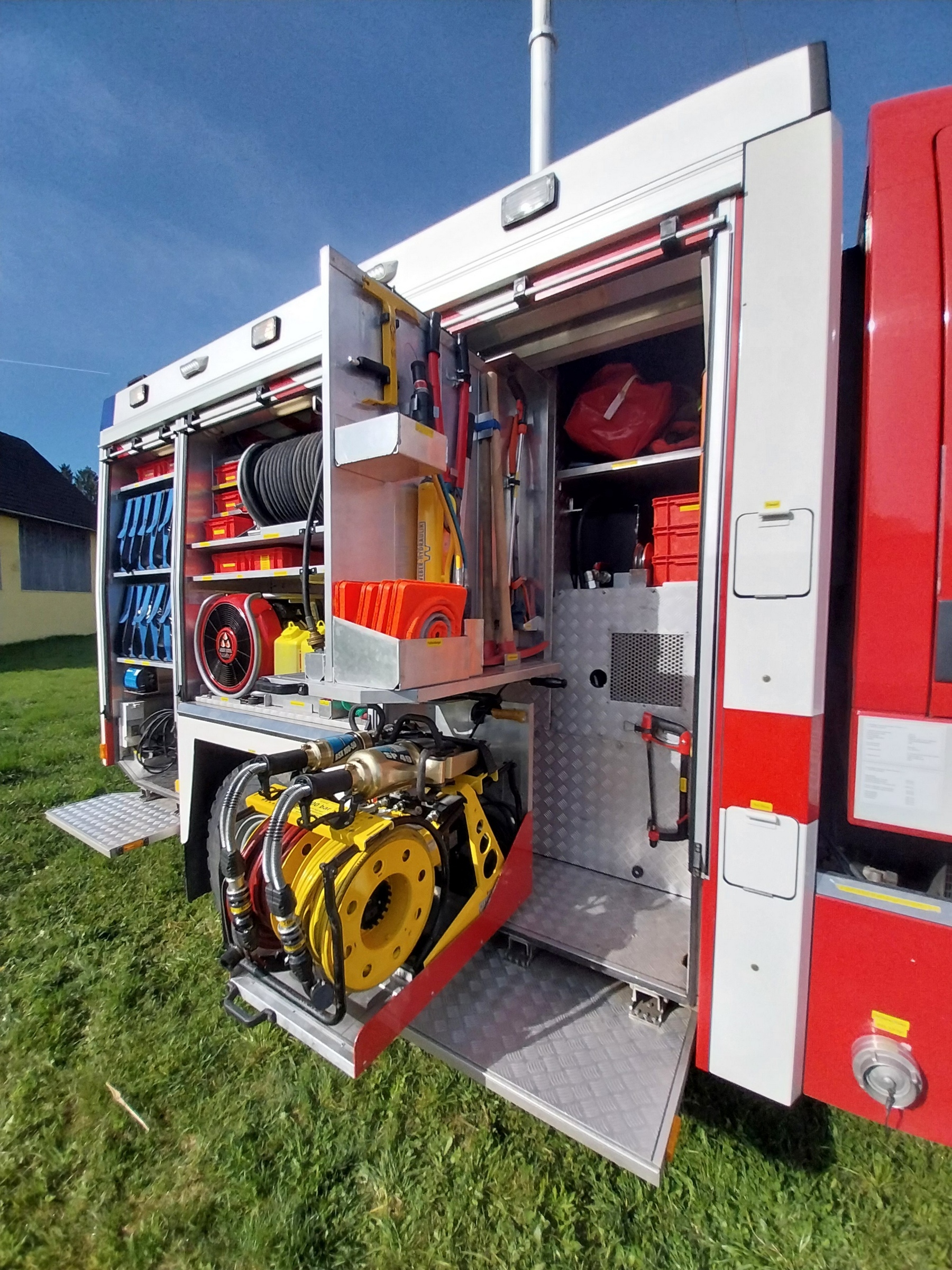 Der feuerwehrtechnische Aufbau wurde von der Firma NUSSER Fahrzeugtechnik aus Feldkirchen aus Alu-Hohlkammerprofilen gefertigt. Der Abschluss der Geräteräume erfolgt durch Alu-Jalousien und klappbaren Standbrücken.
